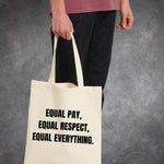 Alege Tote Bag-ul "Equal Everything" pentru a duce cu tine un mesaj puternic de egalitate si respect. Cu un design minimalist si expresiv, aceasta geanta este perfecta pentru cei care cred intr-o lume in care toti merita aceleasi drepturi si oportunitati, indiferent de diferentele lor.