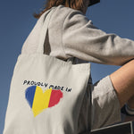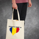 "Proudly Made in RO" este mai mult decat un simplu mesaj – este o declaratie de mandrie fata de traditiile si cultura romaneasca. Confecționat din materiale de calitate, acest tote bag iti ofera spatiu pentru toate lucrurile esentiale si iti completeaza perfect stilul. Fie ca il folosesti pentru cumparaturi, la scoala sau pentru un look casual, vei adauga un plus de autenticitate si mandrie romaneasca in fiecare zi.