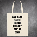 Carry a strong and authentic message with you! The "Love Has No Rules" tote bag is not only a practical accessory, but also a statement of freedom and acceptance. Whether you use it for shopping, at the office or on daily walks, this tote bag will always accompany you with style and meaning.
