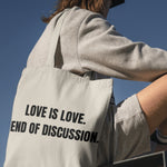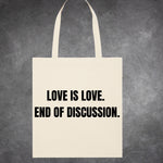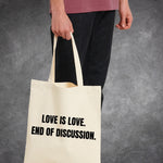 Poarta mesajul iubirii autentice cu tote bag-ul "Love is Love" – o alegere perfecta pentru a arata sprijinul tau fata de diversitate si iubire fara bariere. Realizat din materiale durabile si eco-friendly, acest sac ofera nu doar un design elegant, ci si functionalitate pe parcursul zilelor tale.